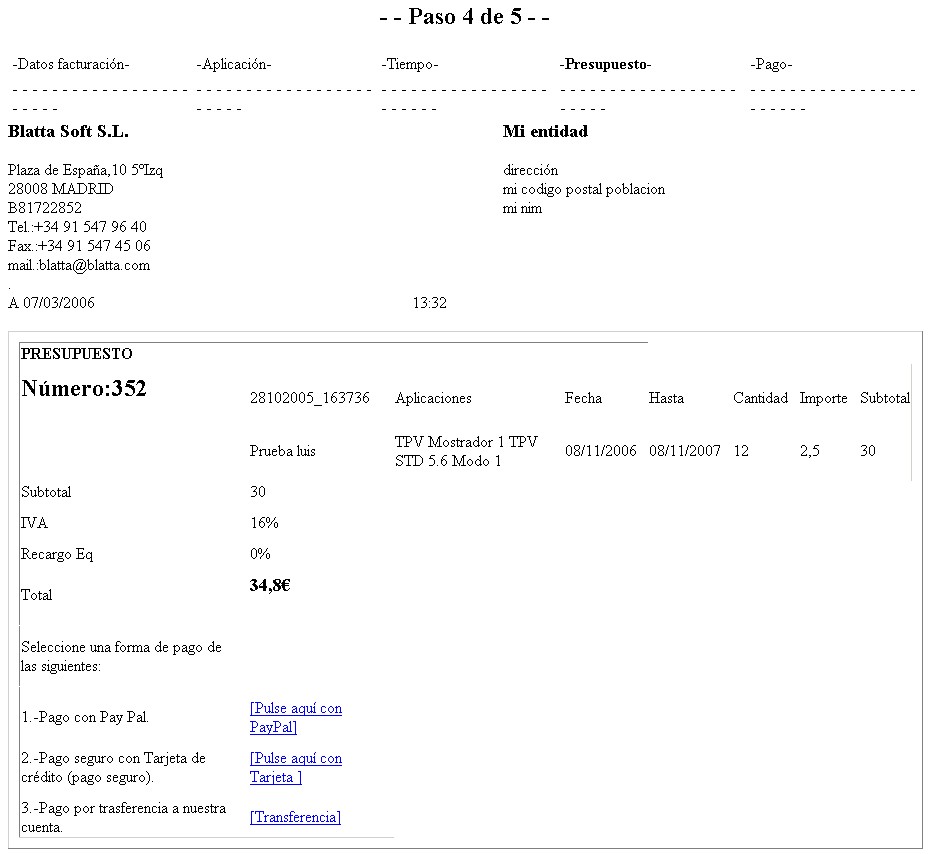 En esta pantalla le aparecerá un presupuesto, con sus datos y el importe a pagar.